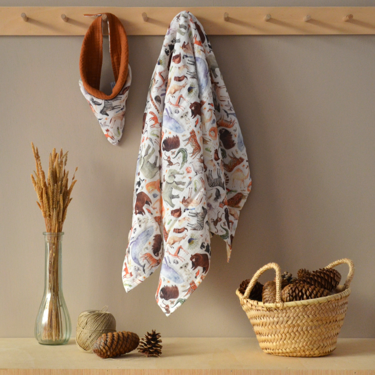 Mantita Muselina Animales con ilustraciones de Cecilia Plaza