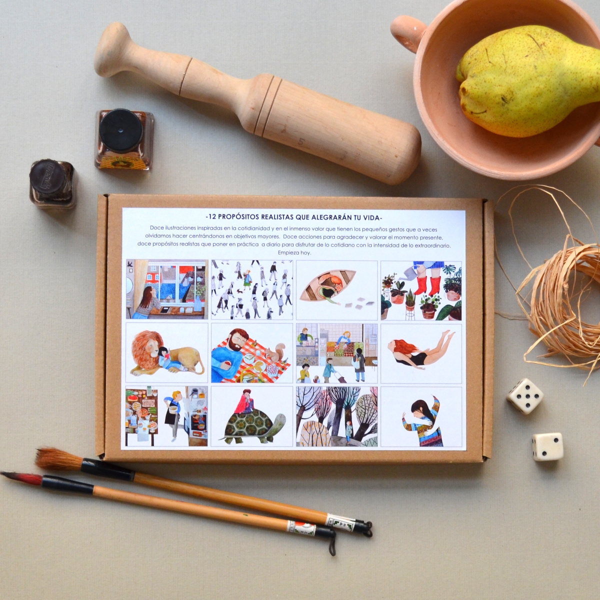Doce ilustraciones inspiradas en la cotidianidad y en el inmenso valor que tienen los pequeños gestos que a veces olvidamos hacer centrándonos en objetivos mayores. Doce acciones para agradecer y valorar el momento presente. Doce propósitos realistas que poner en práctica a diario para disfrutar de lo cotidiano con la intensidad de lo extraordinario. Empieza hoy.