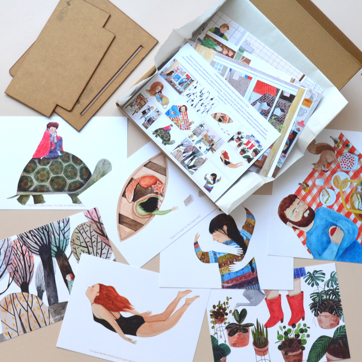 El Atril Propósitos realistas que alegrarán tu vida consta de 12 ilustraciones originales de Cecilia Plaza.
