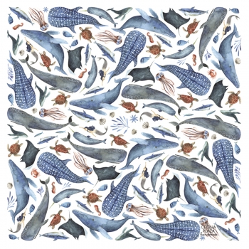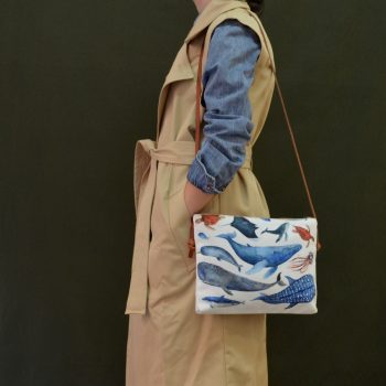 Cartera R-Pet MARINO con ilustración original de Cecilia Plaza.