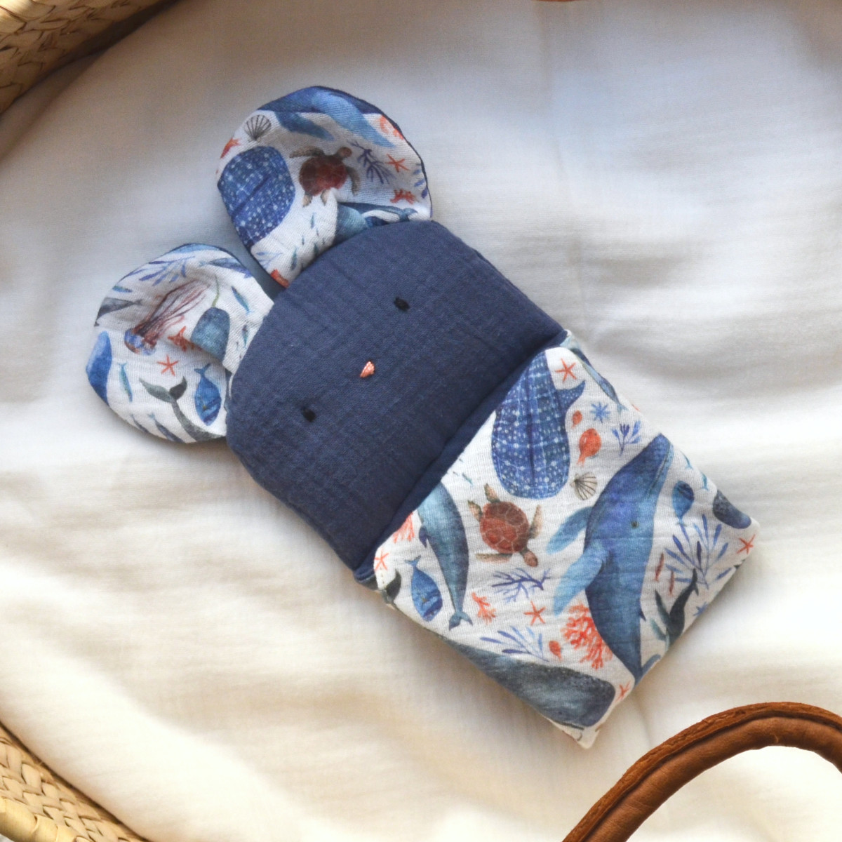 MATERIALES // 100% muselina de algodón orgánico (100g/m2) Oeko-Tex® Standard 100¹ // Cabeza rellena de guata fina de poliéster.