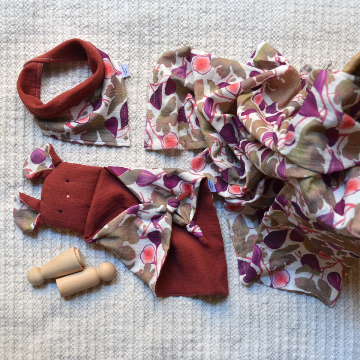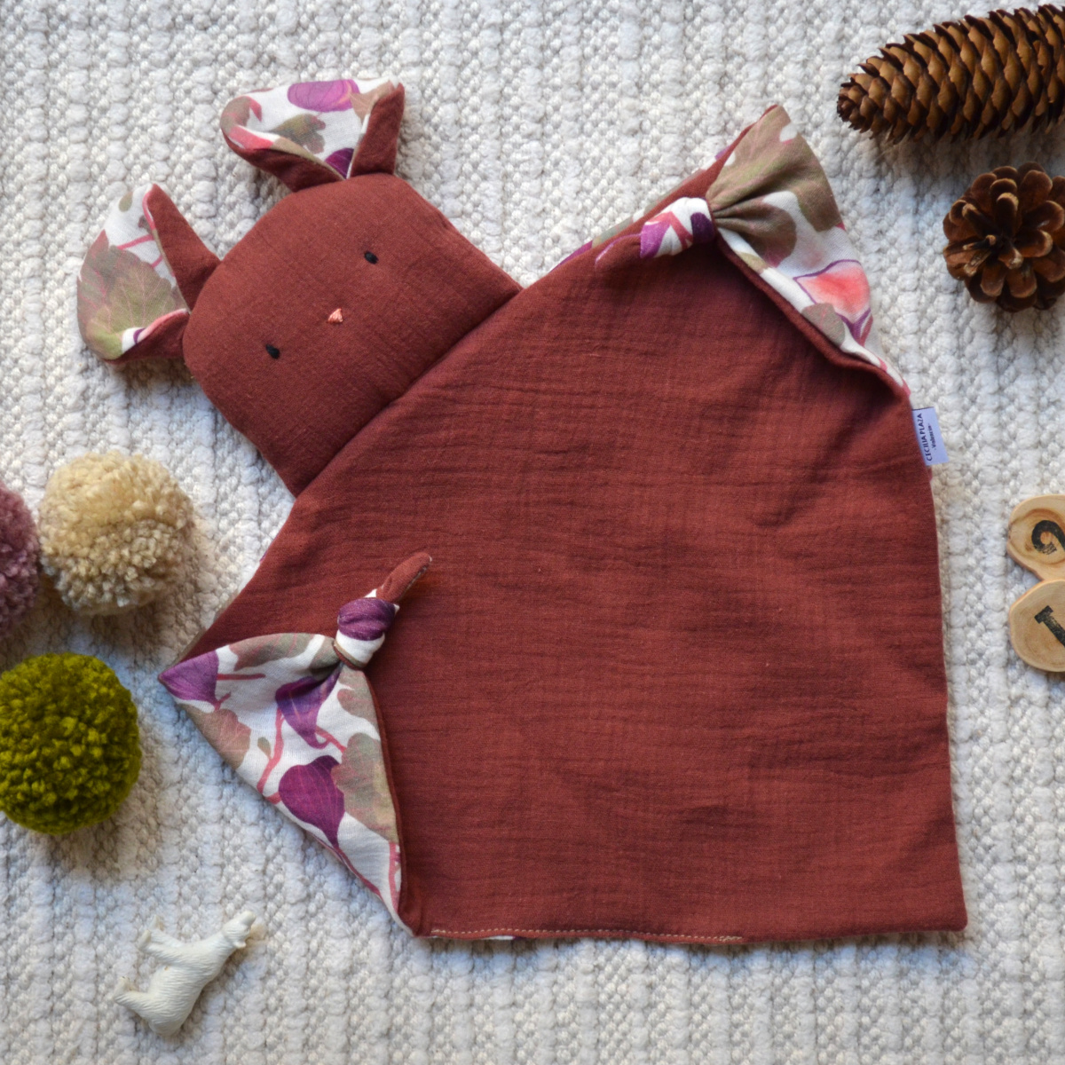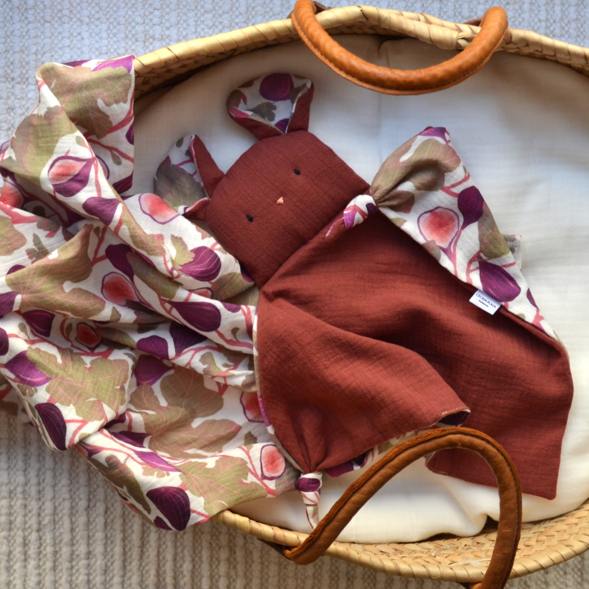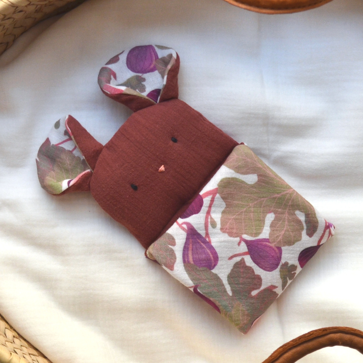 MATERIALES // 100% muselina de algodón orgánico (100g/m2) Oeko-Tex® Standard 100¹ // Cabeza rellena de guata fina de poliéster.