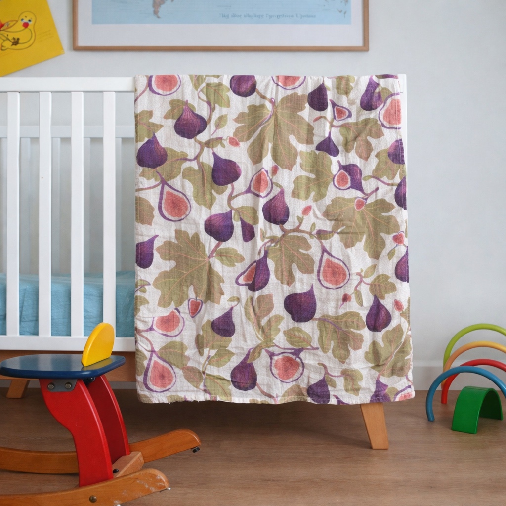 Mantita Muselina Grande Higos con ilustraciones de Cecilia Plaza