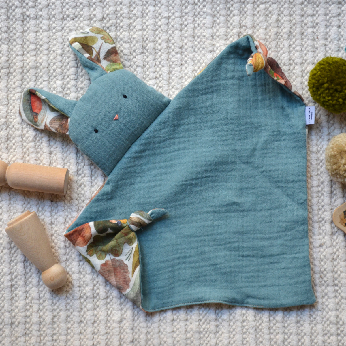 MATERIALES // 100% muselina de algodón orgánico (100g/m2) Oeko-Tex® Standard 100¹ // Cabeza rellena de guata fina de poliéster.