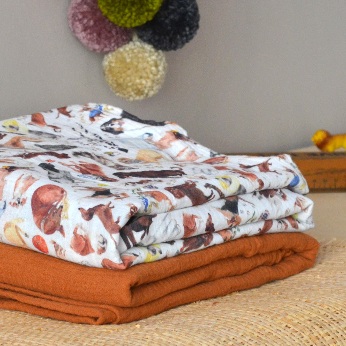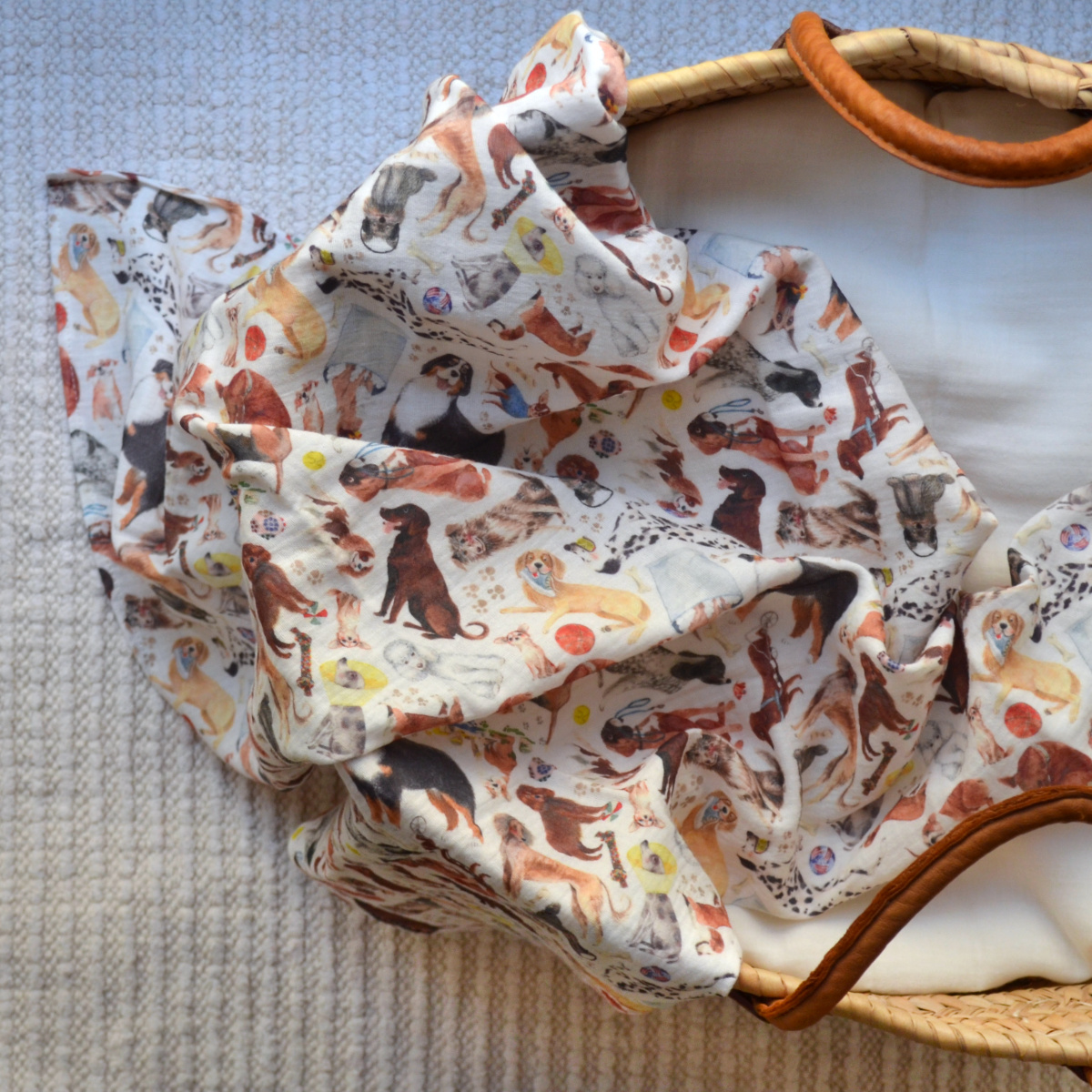 Mantita Muselina Perros con ilustraciones de Cecilia Plaza