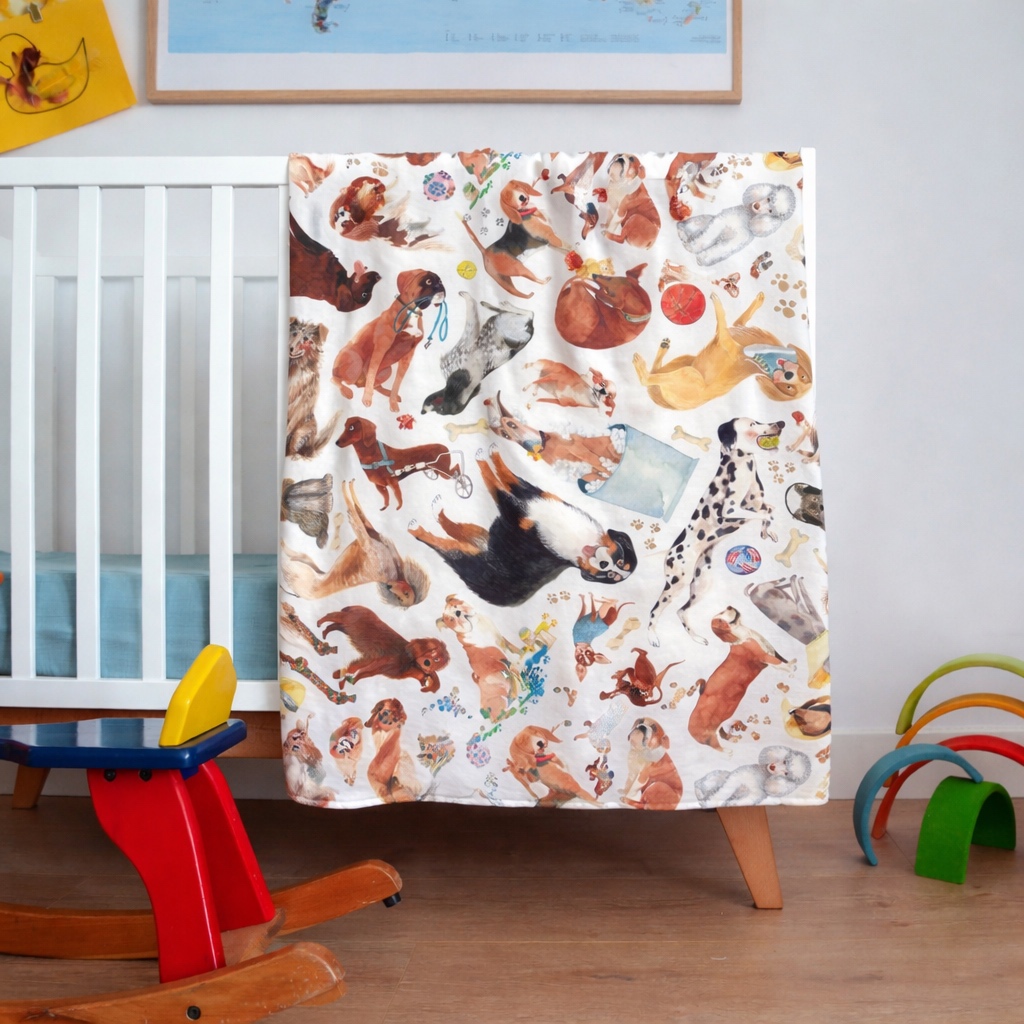 Mantita Muselina Grande Perros con ilustraciones de Cecilia Plaza